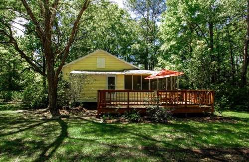 Cozy Cottage with separate guest house in the country near Abita Brewery, wineries, Lake Ponchartrain, and a short drive to New Orleans. This historic barge board cottage on private property has a covered gazebo, wraparound screened-in porch, outdoor deck and walking paths through the woods to see foliage, squirrels, and birds. Great place to experience the beauty of the wooded landscape and get away from it all. Ample parking. Nice set up for guests who need two separate areas. Kitchen is fully stocked with all you need to prepare a gourmet dinner or something simple to enjoy on the deck or screen porch. There are four bedrooms: two in the main house and two in the guest house. The main house front bedroom contains a double bed to accommodate two guests and the back bedroom offers a queen bed for two guests. There are three twin beds in the guest house to accommodate three guests. Both buildings have a full bath.