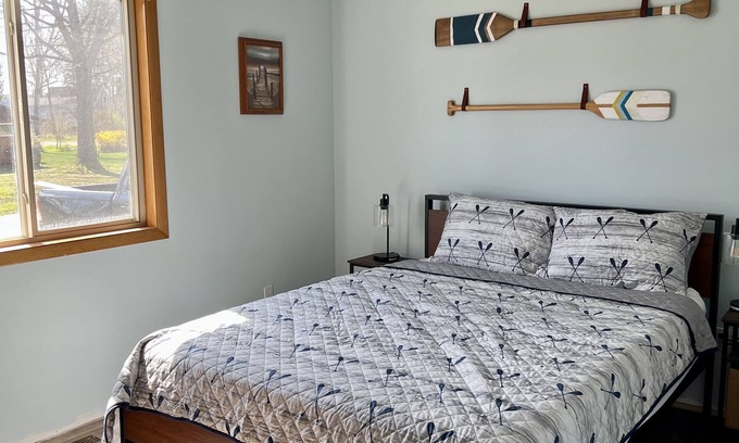 Our house is located in the center of the beautiful Canadian Lakes, feet away from its own water access and dock. Open concept living space with a full kitchen and dining area with lots of natural light. 2 bedrooms and 2 full bathrooms on the main floor and a loft space that houses an additional 4 full size daybeds. The deck on the back of the home over looks the spacious backyard. Fire pit, kayaks, and yard games on site available for use. Minutes from restaurants and golf courses. The house is walking distance from the local beach