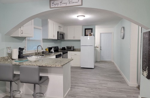 Also a quick 7 minutes from the beach and Navy Seals Museum. It does not get any better than that as far as location. Inside is fully equipped home with everything you need to feel at home. Beautiful King bed in Master and very Comfortable Queen mattress that would make you fall asleep in minutes. Each bedroom has USB chargers in every lamp, kitchen is fully accommodating for long stays, and coffee machine & Keurig for you coffee lovers. No matter if it's a friends' trip or a family vacation, this house will leave you wanting more! We could not skip the important detail that this property is in the historical district of Fort Pierce and deemed a Historical Monument! Not only an amazing way to spend your time away from home but you will be staying at an actual monumental home that is almost 100 years old. We cannot wait to host your next trip!