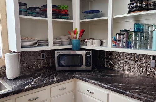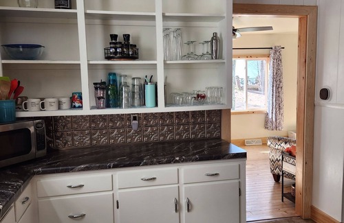 The kitchen is fully stocked with everything you may need to prepare a meal or cocktail. If cooking is your thing, you will enjoy the quality cookware, a collection of kitchen tools, and a gas grill. We provide K-cups, tea choices, and hot chocolate for your stay. There is a coffee grinder as well, if you prefer to bring your own coffee.