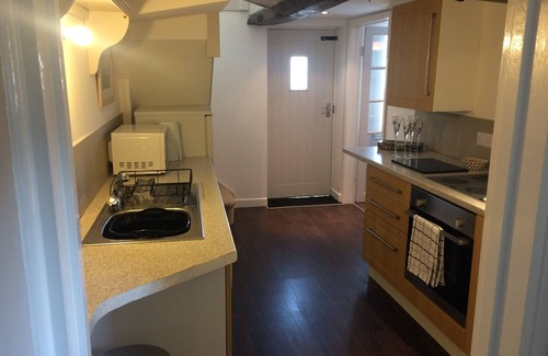 Little Lodge is a cosy one bedroom cottage annexed to the owners main house. It has its own front door, back door and rear enclosed private courtyard garden. The cottage is on two levels, downstairs there is a well equipped galley style beamed kitchen including, cooker, hob, microwave, kettle, toaster, fridge with freezer compartment and a washing machine.