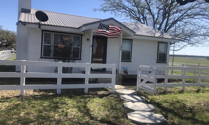 Are you searching for a place to escape the hustle and bustle of city living? Do you own a small airplane and are looking for a place to "jet" off too for the weekend. Then this is the place for you. This two bedroom/1bath retreat is nestled at the edge of the Texas Hill Country in the middle of over 300 acres. As you wind down the country road to our ranch be on the lookout for a variety of wildlife. Deer are abundant and roam freely throughout the property. Upon entering the home your eyes will be drawn to the large stone fireplace perfect for romantic nights by the fire. The bedrooms have ample sleeping room and there is an apartment style washer and dryer in the kitchen. There are acres of land just waiting for you to hike and explore, as well as, several tanks for fishing (catch and release style). As you hike don't be surprised if you are greeted by one of several longhorns grazing in the pastures. In the morning you will be able to sit on the back patio and enjoy a sunrise and in the evening just by turning your chair you will be treated to a beautiful sunset. Once the sun sets, cast your eyes skyward and you will be in awe of the number of stars filling the night sky. No bright lights or loud sounds, just you, the people you care the most about and nature for your enjoyment.