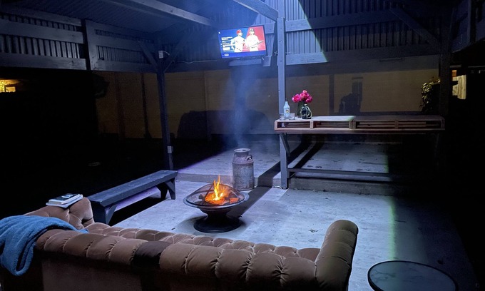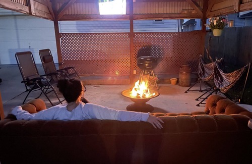 Enjoy our cozy covered patio out back with a privacy fence, fire pit, and a barbecue grill. Watch TV outside, eat dinner, or just hang out and listen to music.