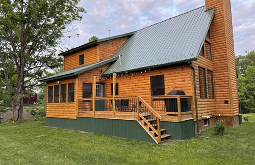 This cozy cabin is located in a quiet country setting in Central New York. Richfield Springs area has many lakes for boating and fishing in the summer and ice fishing, snow skiing, and snowmobiling in the winter. In the Fall, enjoy hiking or mountain biking in the brisk air and fall colors. If golf is your game....there are many challenging golf courses nearby with rolling hills. Cooperstown, home of The Baseball Hall of Fame, has shopping, The Fenimore Art Museum, and restaurants ten minutes away. The Glimmerglass Opera and Glimmerglass State Park are twenty minutes away. Enjoy skiing in the Adirondack or the Catskill's an hour North or South of the cabin. Or just stay home and enjoy a puzzle, board games, or pool in the game room. Work out in the loft gym, or relax on the front porch. A fire in the backyard fire pit is a perfect ending to a fun-filled day. The cabin is in a rural setting where city water is unavailable. Our well is equipped with an in-line filter. High-speed fiber-optic wireless internet has recently been installed. The TVs come equipped with digital streaming and many movie apps. The house is also equipped with a 50amp charger, for any Electric Vehicle to charge while staying. The cabin also has a pack-n-play and booster seat for small children. Every family can make memories lasting a lifetime at this cabin.