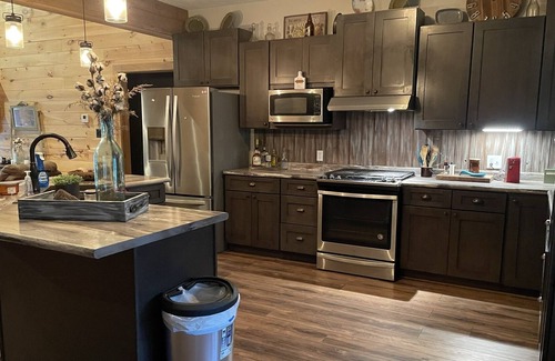 Only 13 miles from MSU! This unique property combines modern finishes with rustic country charm. Be treated to all the luxuries with a fireplace, spacious open living room, dining room and a fully equipped kitchen. The master suite has a king bed and large master bath with jacuzzi tub.