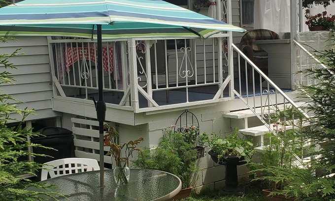 The cottage has 2 private bedrooms. The cozy space features 1 sofa bed and 2 queen beds, perfect for a group getaway. With AC, a washing machine, Dryer and WiFi. Guests can relax and unwind in front of the outdoor fire place. You're sure to make fantastic memories with a stay at the cottage .