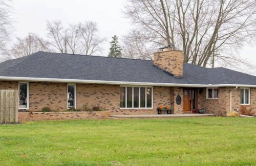 Book your stay at this beautiful all brick, ranch style home. Minutes away from downtown Goshen, where you will find great restaurants, bars, and coffee shops. During summer enjoy a private pool, with year-round access to a hot tub. 6 Beds to sleep 8 comfortably. King, Queen, and two bunks! Fitness room with resistance bands and cardio equipment! Fully equipped kitchen, with a cozy living room. Entertainment room in the basement with pool table, TV, and mini fridge.