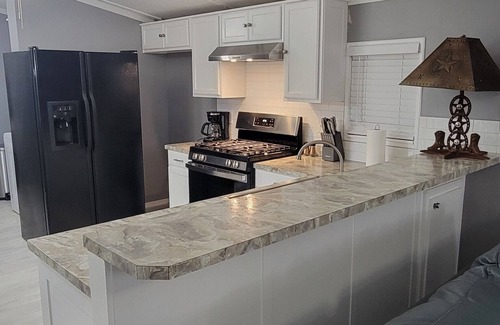 Country Living, is a very cozy home to relax in from the road or from work. You can start to relax on the leather couches while watching some TV. Our two large bedrooms come with King beds, with very comfortable mattresses, the night stands come with dimmable lamps and a USB or outlet to charge your phone, tablet or lap top. Our third room has a Double Sleep Number bed for your choosing of sleep, soft to a harder mattress feel. The living room couch turns into a Queen Sleeper bed, if an extra bed is needed. In the kitchen we have all the utensils you need from forks, knives to pots n pans. We have a very spacious property and at night you can see all the stars out in the sky. Across the street from the property you can sometimes see the donkeys, lamas roaming around. Just a little bit of the country living.