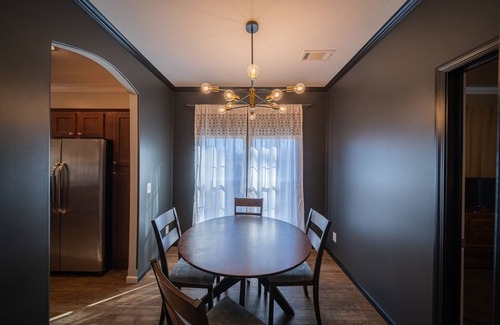 Our newly renovated space is your next oasis! Our home features a king size bed in the primary suite as well as a deep soaking tub and shower in the primary bath. Our second bedroom has a twin bunk bed set. Our kitchen comes stocked with all of the essentials for preparing a meal and includes an array of spices and seasonings as well as oil.