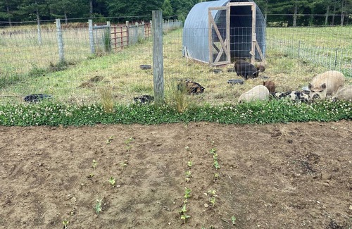 Our property features several different fenced pastures all accessible to guests available upon request. Our property is home to a variety of animals including chickens, guineas, pigs and goats. Our mother/son duo of goats, Dow and Henry, love snacks from guests. We have a group of the sweetest pigs you would ever meet, according to us anyways. Our pigs - Milk, Wilbur, Dangles and Scrangles will happily take all the back scratches if you choose to visit with them. We also have a flock of guinea fowl. They are all identical in color and size except for our one gem, Magnolia. She’s the loudest of them all. Lastly, our chicken math caught up to us and we now currently home around 50+ laying hens. Each guest that books with us will receive one dozen of our sweet ladies eggs during laying season. Their eggs range in color from dark golden brown, light cream, baby blue and many colors in between.