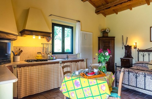 Nestled amidst beautiful valleys in Cagli, this holiday home is perfect for a couple looking for an unforgettable experience. It features a shared swimming pool, a sauna, and a living-cum-bedroom to relax and stay comfortably.