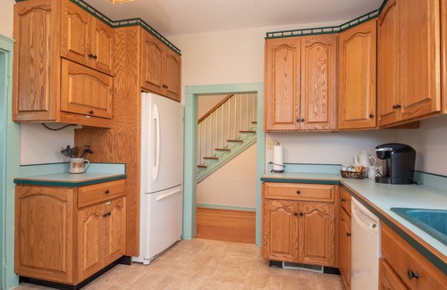 Get comfortable and enjoy plenty of extra room at this spacious place. Our rental is sparkling clean and tastefully decorated to ensure you have a relaxing stay. The main floor has a kitchen equipped for your basic cooking and baking needs, a dining room with seating for six, a living room, and one full bathroom. Upstairs, you will find four bedrooms and one full bathroom. One bedroom has a king-sized bed, and the other three have queen-sized beds. A washer and dryer are conveniently located in one of the bedroom closets.