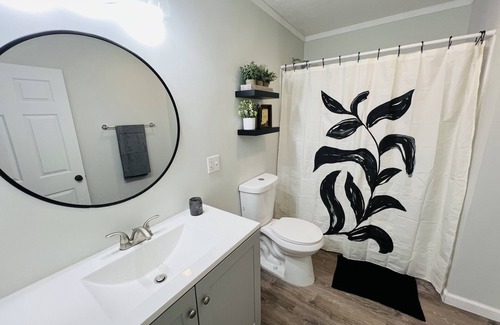 Bathroom: Our stylishly renovated bathroom features modern fixtures and amenities. Start your day with a refreshing shower or unwind in the tub after exploring the town.