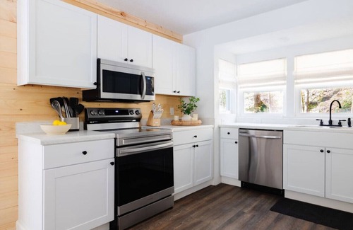 ⇢ Modern, well-equipped kitchen fully stocked with everything you’d expect in your own home, including thoughtful touches such as a Keurig, griddle, slow cooker, waffle maker, and more