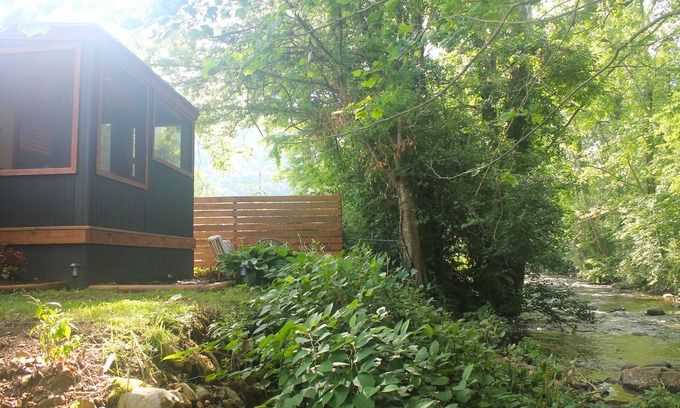 It features a newly remodeled bathroom with a full size shower. The kitchen is well appointed and includes a toaster, blender, full size stove and refrigerator, double sink, coffee maker, cooking utensils, coffee, basic spices and condiments. The living room area has a television and brand new couch. The bedroom has new queen size bed. There is a comfortable screened porch with a bar area that overlooks the firepit area and Laurel Fork Creek. There is also a tent spot for the kids if you want the GLAMPING EXPERIENCE.