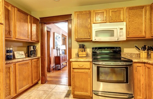 This home is filled with antique, wooden craftsmanship almost 100 years old. It features two bedrooms--one with two twin beds and a fun nautical theme and one with an ornate full-sized bed. There is one bathroom with a step-in shower, full vanity, and conveniently placed outlets that make getting ready a breeze. It has a spacious living room, dining room, and fully equipped kitchen. There is also a full laundry room with a washer and dryer, free for guests to use. Pets are considered upon request and subject to extra fees. A total sleeping capacity of 7 guests when including the full sized air mattress and couch. Come explore our lovely little town!