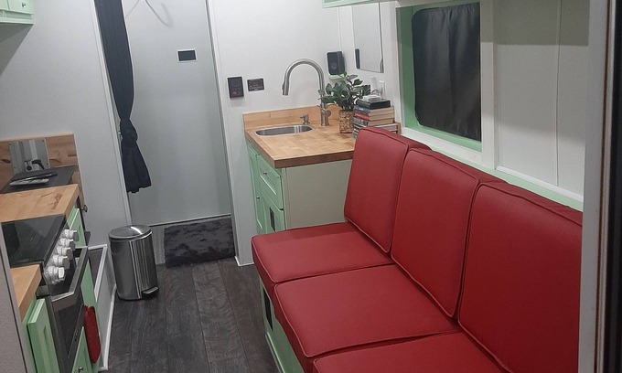Enjoy a taste of tiny home living! Located in Chesterfield, this off grid recreational vehicle is a dream. Studio style featuring a cozy futon, guests will feel right at home. The bathroom offers a small yet refreshing shower, ensuring a nice start to the day. A few steps out the door you'll find your own personal lighted portable toilet. AC, heat and WiFi are available for your convenience. Whether you're exploring the city or simply relaxing, our fabulous property provides the perfect base. It's easy to see why you'll be able to unwind at our place.
