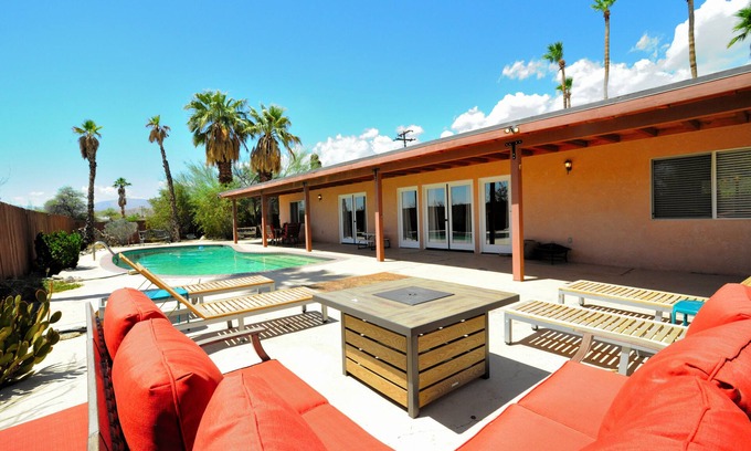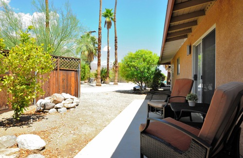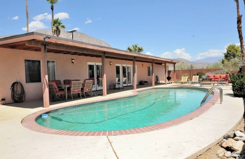 Take a break and unwind at our peaceful desert oasis. Cozy, mid-century 2BR complete with a pool, fire pit, and fully fenced backyard. Spectacular dark skies make for extraordinary stargazing. Minutes from restaurants, shops and Anza Borrego Desert State Park. ————————————————————————Property is located on a quiet cul-de-sac about two miles north of center Borrego. Master bedroom has ensuite bath with jetted tub and a private patio. Guest bedroom has mountain views from in bed. Kitchen is fully stocked, including a teakettle, blender, cake mixer, chefs knives, coffee and basic spices.