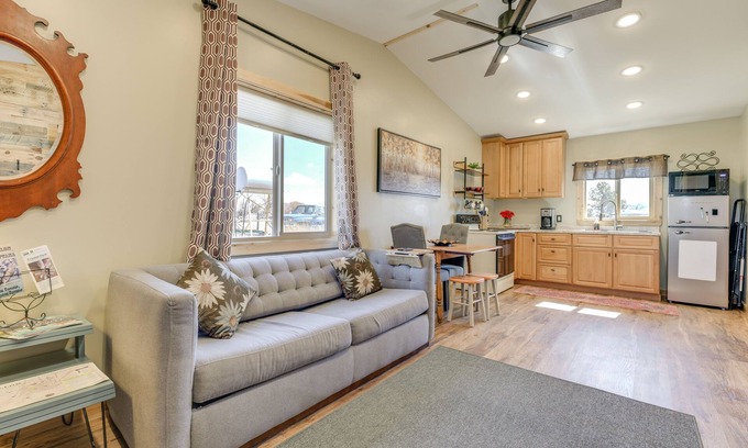 Mountain views and tons of outdoor adventures await at this Dillon, MT, vacation rental. Tucked away in a quiet neighborhood, this 1-bedroom, 1-bath home offers the peace of a calm country retreat with the fun of town just a quick drive away. Take in the scenic landscapes at Clark’s Lookout State Park, fly fish for trout in the Beaverhead River, or relax in the lawn chairs and watch deer feed in the field. Spend the evening streaming a movie on the Smart TV by the warmth of the fireplace.