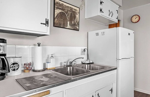 Welcome to your cozy Cliff/Cannon studio, thoughtfully designed with comfort, charm, and convenience in mind. Enjoy a spacious living room with city views, a love seat bathed in warm afternoon light, a 43” Fire TV, and a 2-seater bistro table perfect for dining while taking in Spokane’s vibrant skyline. The end table, stocked with local historical books, offers a touch of regional charm, and the living room provides ample space to stretch out or roll out a yoga mat.