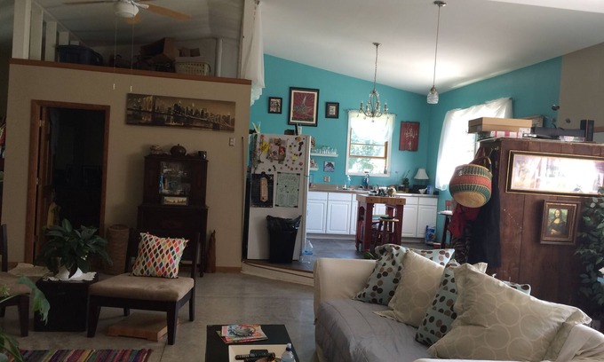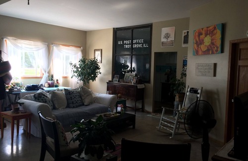Privatish bedroom, spacious living room, large shower, eat in kitchen, workspace, huge patio and yard. Quiet, cool, quaint, eclectic and cozy. Bedroom sleeps 2, bedside table, lamp, sleep machine, papasan chair. Bright and cheery kitchen, stainless steel countertops and high ceilings, bathroom has a 16 sq.ft shower and large full length mirror. Concrete floors throughout keep the house very cool, wifi, Netflix, Hulu, as well as DVDs. Serving fresh baked goods courtesy of the Ottawa Bakery (guests also get a 10% discount, m-sat) bottled water, locally brewed Tangled Roots beers ($20 to cover purchase). Let me make your visit to Starved Rock country memorable!! I work & go to school, I will be home nights and in and out of the house. You can control the TV;) and I'll let you be! As of JAN. O1, 2018: there is an additional 20% charge for state & local taxes. Otherwise this is coming out of my pocket. Hope you love it here!!