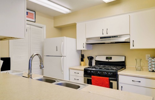A living room, a fireplace, air conditioning, and a ceiling fan are featured at this 2-bedroom, 2-bathroom rental. Enjoy the free WiFi and TV. Be sure to check out the kitchen, stocked with a coffee maker, cookware, and paper towels. And you can even travel light because you'll have a washing machine. Other amenities include bed sheets, a desk, an ironing board, and heating.