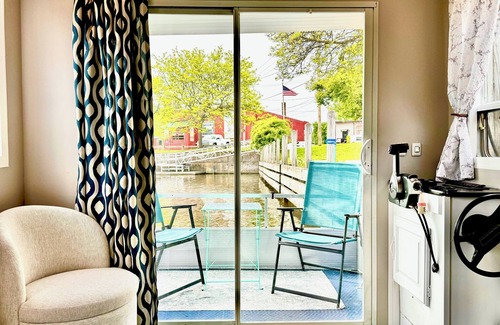Cozy Erie Canal Houseboat in the Heart of Bustling Downtown Medina | Boat Rental in Medina