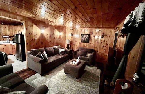 The family friendly cape has a wooded interior throughout the main level. Full kitchen and dining room with a propane fireplace. There are views of mountains from our living room and front deck. We have a large back yard with fire pit. Sleeps up to 7. The first floor has two bedrooms with a queen size bed in each, while the upstairs has a twin bed and a full bed and plenty of space for more (air mattress is available). There is a television in every bedroom and living room with access to Amazon and Netflix. We have puzzles and other games for entertainment. The walk out basement is a great area to store all of your equipment and gear whether it be for hunting, snowmobiling, skiing, fishing, etc.