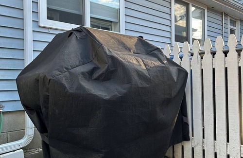 Outdoor space includes a hose for washing sand off, bbq, private eating area, wagon and toys for the beach.