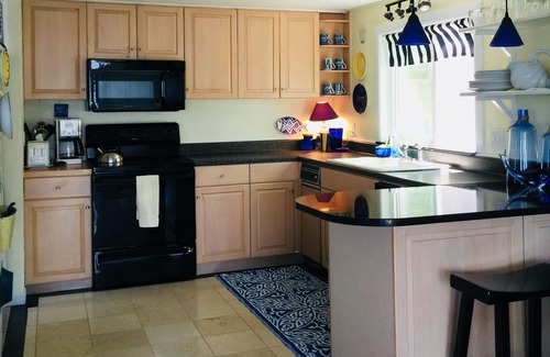 This cottage has recently been remodeled from head to toe. A beautiful new kitchen with granite counter bar, hardwood floors with a no-nonsense finish, full upstairs bath with tub and shower and main level half bath. Two bedrooms, with comfortable queen beds in both the guest bedroom and in the master bedroom. Master bedroom has full sliders which give it a floor to ceiling view of the lake. Access to main bathroom is shared by the second bedroom. Wonderful deck, open floor plan for a relaxed living style and absolutely gorgeous sun sets every evening. (The sun sets are no charge but can be utterly breathtaking!)