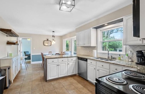 Come unwind in your backyard retreat with an inground private pool. When you step onto the property, you will forget that you are just outside the city center. There are multiple outdoor spaces to relax including a large screened porch, oversized deck with dinning space, large yard with Adirondack chairs, and gazebo by the pool. This home has two office spaces, four bedrooms, and comes stocked with baby gear to accommodate even the littlest travelers. Your family will feel right at home.