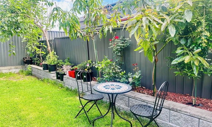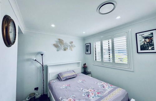 My place blends luxury with modern convenience. Each bedroom has a private ensuite with a bathtub, shower hose, bluetooth mirrors for a spa-like experience. The smart home features phone-controlled air conditioning, heating, and fans. Enjoy landscaped gardens, a balcony with views, & an alfresco BBQ area. Guests also have access to laundry and dryer with an extra charges. Free fast internet. Located minutes from the bus & train station & shopping, it’s perfect for a comfortable stay. Breakfast, tourists guide and car is available with an extra charges. Fully secured home like stay.