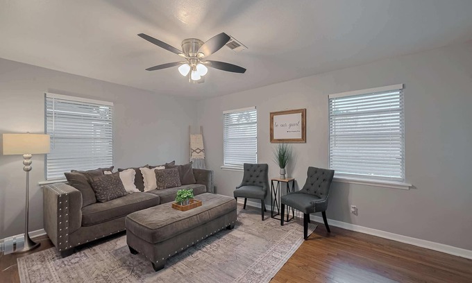 Enjoy a comfortable stay in this stylish 3-bedroom, 2-bath home in the heart of Houston. Ideal for families or small groups, it features spacious rooms, a full kitchen, and self check-in via smart lock. Conveniently located near dining, shopping, and attractions. Perfect for your next Houston getaway!