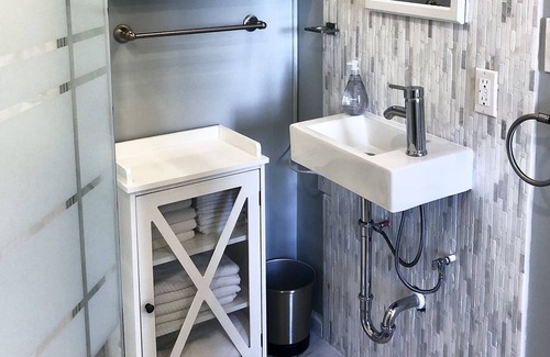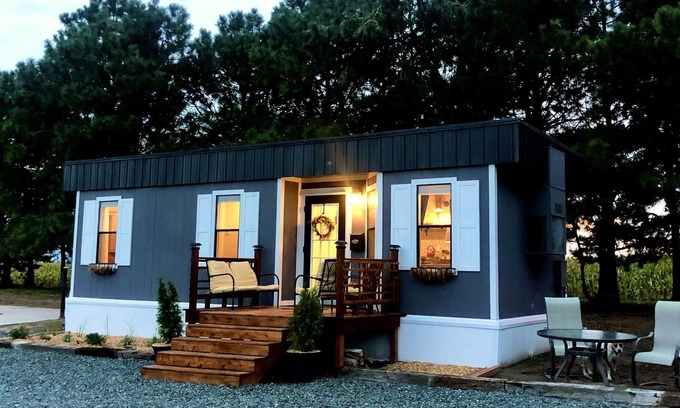 Escape the hustle & bustle of life by coming to a place of peace and privacy amongst the cornfields & sandhills of western Nebraska. Big skies with beautiful sunrises, sunsets, & incredible stargazing. This tiny house is located only 6 miles outside of Scottsbluff on paved roads & provides easy access to the Lake Minatare state recreational area 2 miles away. This property is perfect for outdoorsmen, fishermen, wildlife enthusiasts, or anyone looking for a clean, comfortable, and unique stay. Sit on the east facing deck & watch the seasonal migration of Sandhill Cranes or enjoy the antics of our nearby free-range chickens & ducks as well as a herd of friendly goats. Comfortable guesthouse is equipped with central heat/cooling, 2 burner gas cooktop, small convection oven, dishwasher, full sized fridge, coffee & espresso machines, microwave, apartment sized washer & dryer, blackout shades, wifi, & TV with Roku. Fully stocked with dishes, cooking utensils, pots, pans, & linens. Sofa folds down into twin sized futon bed though may not be comfortable for adults. Patio furniture, outdoor dining area, firepit, & BBQ grill located just outside. Good amounts of storage space in the bedroom drawers & wall cabinetry as well as an elevated platform bed frame allowing additional storage space underneath.