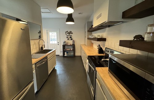 Our fully-equipped kitchen provides all the essentials for preparing delicious meals during your stay. Whether you're a culinary enthusiast or just looking to whip up a quick breakfast, you'll appreciate the modern appliances and ample counter space. The dining area opens to the grand living area and is ideal for sharing meals and making memories!