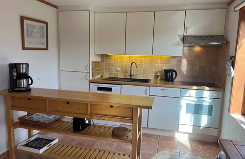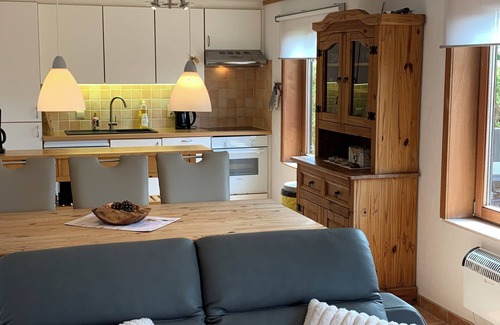 The living room is very cozy and stylish. The open fireplace creates a very special homely atmosphere. Satellite TV, a stereo system and various games are available for entertainment. The kitchen is fully equipped with ceramic hob, fridge, freezer, microwave, oven and dishwasher. Dishes are plentiful. You won't miss anything.