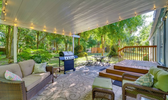 Experience nature's harmony at this 2-bedroom, 1-bath hideaway located in Fort Pierce! Relax on the covered patio and relish in the lush landscape at this secluded, 10-acre ranch. Enjoy easy access to pristine beaches for sun-soaked days by the sea or visit Summer Crush Vineyard for live entertainment and wine tasting — the ideal setting for winding down after a long day of fun. Whether you're seeking quality time with loved ones or a unique getaway, this vacation rental is the perfect retreat!