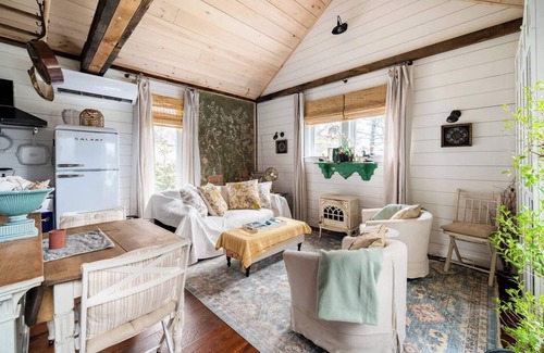 Fully renovated cottage on Climax Creek sits on a country road and provides you the privacy of your own house at a fraction of the cost when you rent this house as a couples retreat! It is the perfect getaway location for a couple looking to escape. A great combination of French country chic and vintage furnishings that give this getaway spot a comfortable and cozy feel. Our cast iron Jotul gas fireplace provides both warmth and ambiance as you enjoy spending time in our open concept great room.