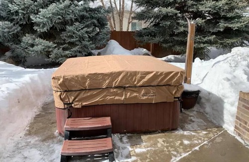Our AirBnB has a south walkway with handrail that descends 11 stairs to the backyard and leads to the private, combination locked entrance. As a guest you will have access to the basement living quarters, the back yard/hot tub area, the community park, and hiking/biking trails.