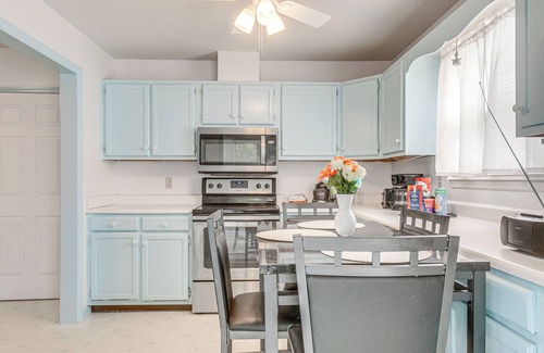 INDOOR LIVING: smart TVs, dining room, comfortable living room OUTDOOR LIVING: Screened porch w/ outdoor seating & grill, backyard, patio w/ picnic table KITCHEN: Cooking basics, blender, coffee maker, dishwasher, stove/oven, refrigerator, microwave, dining table, dishware & flatware, toaster GENERAL: Complimentary toiletries, linens & towels, in-unit washer & dryer, central air conditioning, iron/board, trash bags & paper towels FAQ: 5 steps required for access, 2-story home, Ring doorbell camera (facing out)PARKING: Carport (2 vehicles), driveway (2 vehicles)
