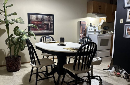 Escape to this charming two-bedroom, two story bungalow in the heart of Taber. With its old-fashioned charm and cozy ambiance, this home is the perfect spot for a peaceful retreat. Large windows showcase the snowy trees ouside, creating a winter wonderland feel. Inside, you'll find comfortable furnishings, a fully functional kitchen, and plenty of space to unwind. Whether you are relaxing with a book, exploring the local aresa, or simply enjoying the quiet, this home offeres a warm and inviting atmosphere for your stay. Kids are welcome.