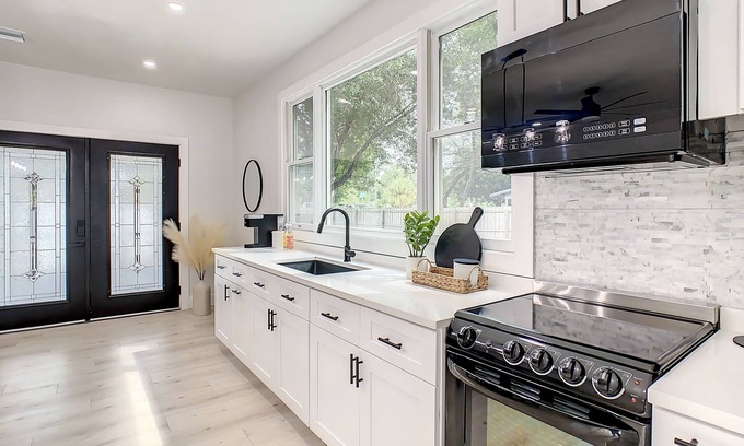 This space sleeps a total of 5 people. 1 bedroom which has a king bed and a huge sectional sofa. Also there is a queen pullout sofa in the living space. 1 bathrooms with shower/bath. Self check-in with keypad lock. There is self parking available for free right in the driveway in front of the house.