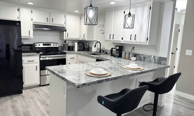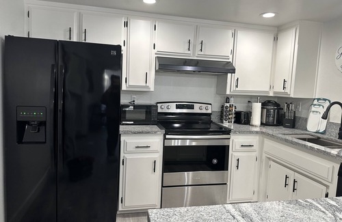 Enjoy your stay in our stylish and freshly renovated 2 bed and 2 bath home. It’s been furnished and equipped with all New furniture and appliances for your needs. There are smart TVs in every room with high speed WIFI. There’s a private master bedroom with King bed, walk in closet and walk in shower. Another guest room is furnished with queen bed. Pull out sofa with 65in TV in the living room to accommodate 6 people total. We’re located in quiet and friendly neighborhood in Carmichael.