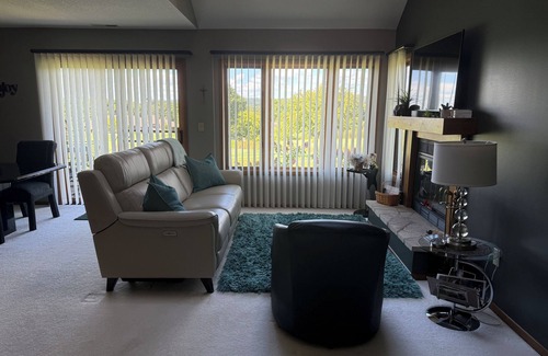 This charming golf villa is located on the 9th green of the East Course which gives you an ideal location to watch golfers finish the game while overlooking a beautiful pond and occasional wildlife. Our villa offers the perfect location for long walks or cross-country skiing in the winter. We are centrally located near Owners Club, Golfing, and Marina. The wood burning fireplace offers great ambiance for a cold winter's night. A whirlpool tub is another feature to help you relax, unwind, and enjoy every season in beautiful Galena. We are ten minutes from Galena's historic downtown shopping area, 25 minutes to Dubuque Iowa and 20 minutes to Chesnut Mountain for winter skiing and summer fun.