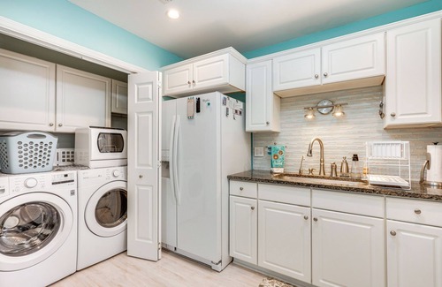 KITCHEN: Stove/oven, refrigerator, portable dishwasher, cooking basics, dishware/flatware, electric kettle, Crockpot, microwave, toaster, ice maker, water filter, spices, knife set