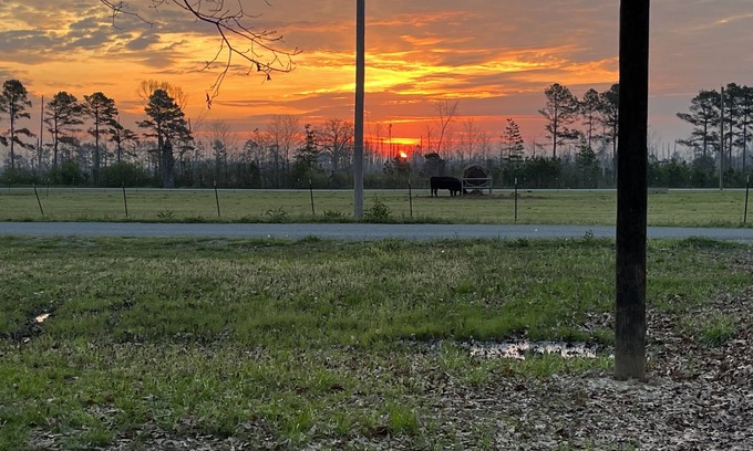 Unfortunately, because of this property being on a working farm, pets coming with owners that are unfamiliar to the animals on the farm can be dangerous. We want all animals to be safe. Pets are no allowed.