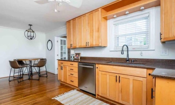 This spacious home, with tons of natural light, is in a walkable and safe neighborhood. It has 3 bedrooms, a 4th bed in the basement, 3 full baths (one on each floor), & a fully stocked kitchen. The whole group will enjoy easy access to everything from this centrally located place.