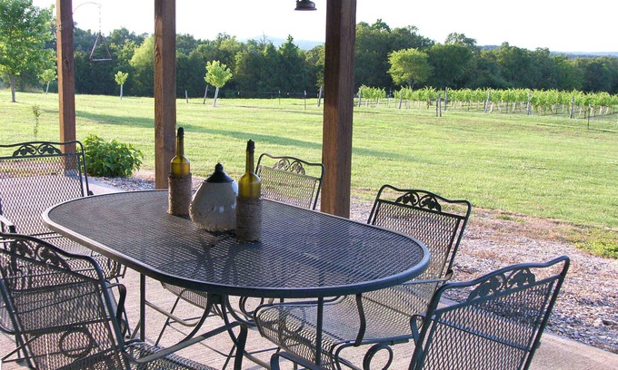 Experience quiet & private country living in our 2 bdrm, 2 bath cozy guest house w/full kitchen, laundry rm living area with pull-out sleeper couch, and covered front porch with spectacular view! 1 ac vineyard & view of Ozark mountains. Just 10 minutes to the Hercules Glade Wilderness area & trails that are part of Mark Twain National Forest. One mile from public boat ramp on Bull Shoals Lake with world class walleye, bass, and crappie fishing. Just 40 minutes to Branson, Mo. 45 minutes to Brown-Branch Canoe Rental on Beaver Creek. 90 minutes from lots of other canoe floats in Southern Missouri. Access to a private grass airstrip IS available.
