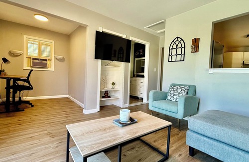 Updated 1 bedroom, 1 bath guest house with full kitchen, spacious living room, reading/office space and walk-in closet. This is a perfect property for your vacation or home-away-from home. You will love the space and location!