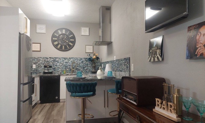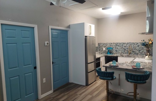 Influenced by the resourcefulness of the owner's late grandmother , this quaint one bedroom suite was designed to encompass function, design, and comfort. This brand New Gorgeous one bedroom one bath in law suite is located in a lovely family friendly neighborhood minutes from the Hillsborough river and various neighboring parks. “As she wrapped her warm arms around me and we glanced at the ocean from the top of the hill, she transferred her power of curating beautiful functional spaces to me." Her spirit lives on through my designs and this special space was crafted with her essence in mind. And so, it is only befitting to call the newest suite of my Portfolio of Designs ” Connie’s Cottage tastefully crafted with her Spirit in mind!